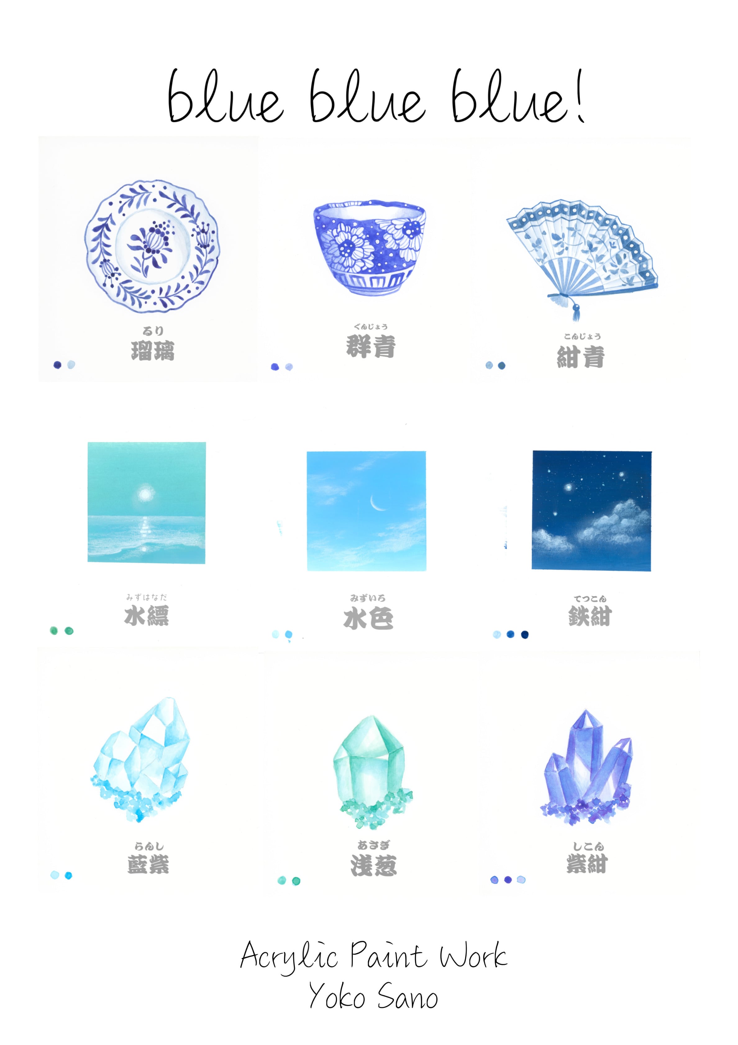 Blue Blue Blue!では大好きなブルーでその要素を練習できるよう、ぎゅっとこのテキストに詰めました!絵付け師や錬金術師になったような気分で楽しんでいただけたらうれしです!